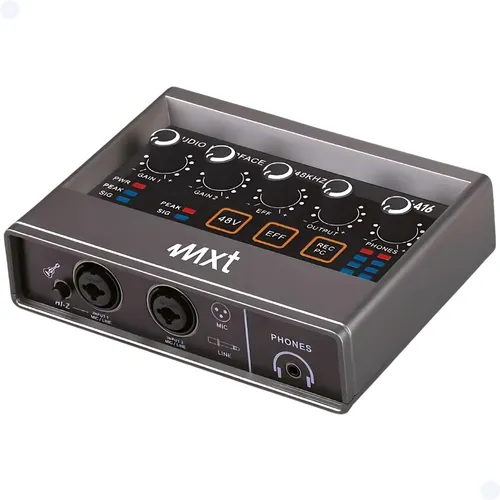 Interface de áudio e gravação super versátil para conectar instrumentos, mixer, etc. em seu celular, computador ou notebook para transmissões on-line, gravação ou playback.
